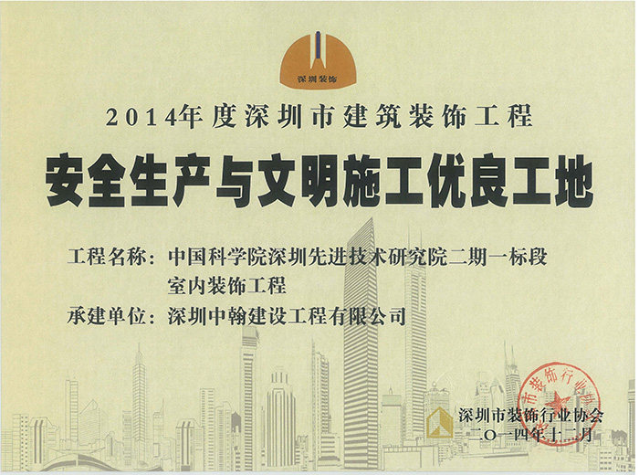 2014深圳市建筑装饰工程安全生产与文明施工优良工地中科院