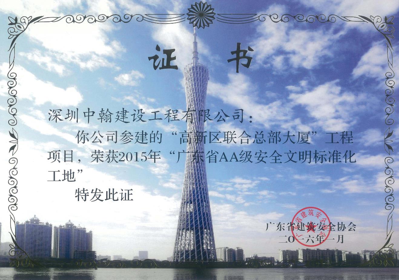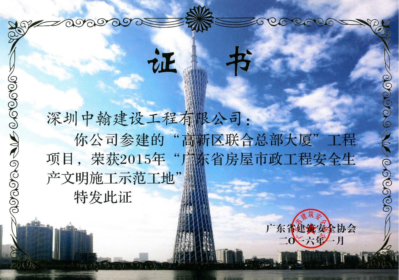 2015年度“广东省房屋市政工程安全生产文明施工示范工地”